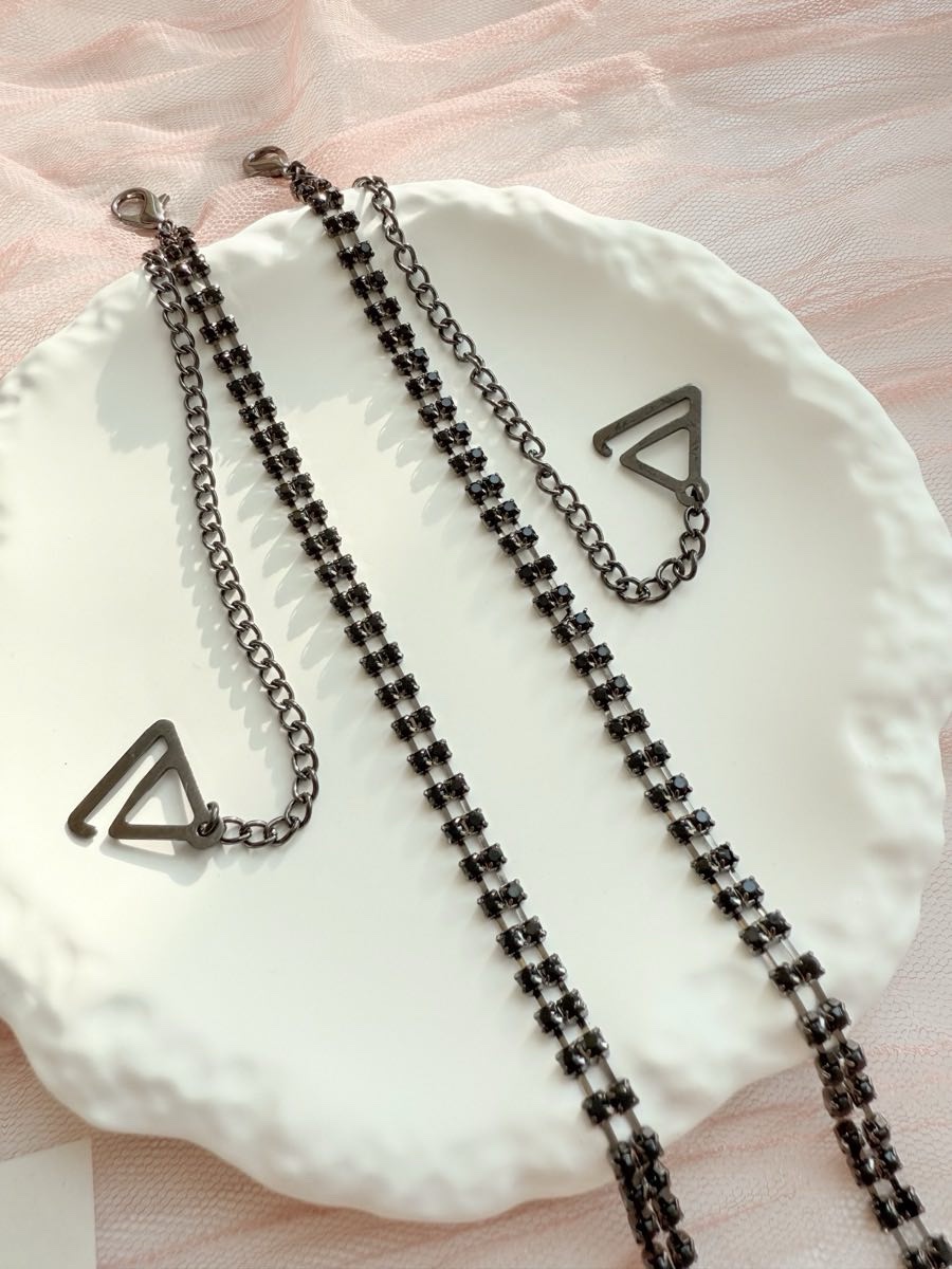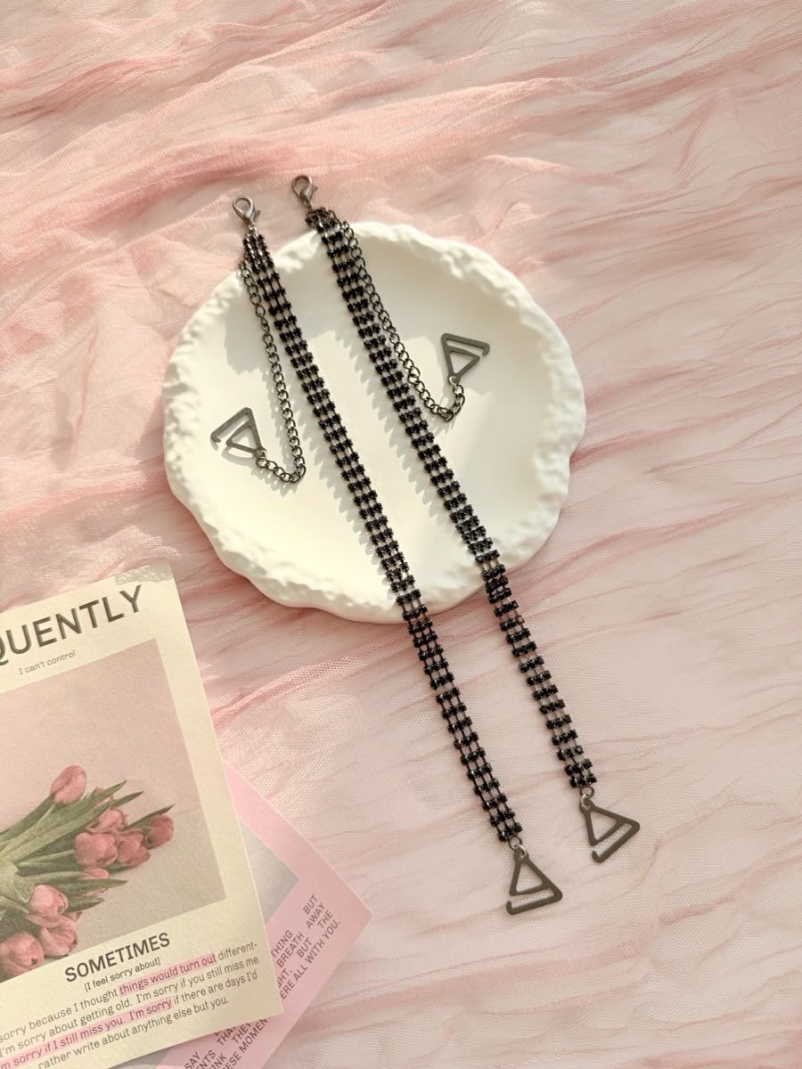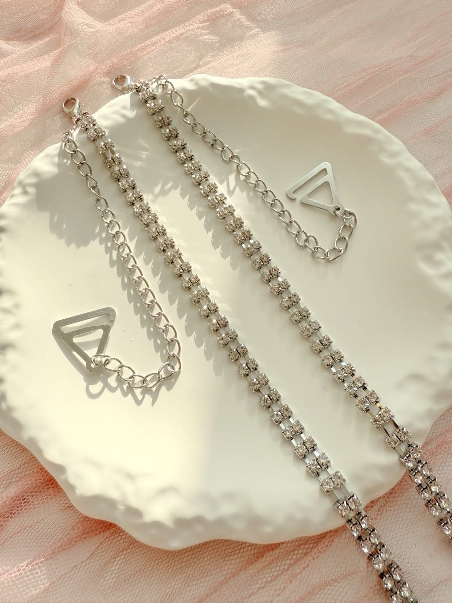 Змінні бретелі для бюстгальтера зі стразами — яскравий аксесуар, що додає образу сяйва і водночас забезпечує надійну посадку. Металеві ланки зі стразами красиво виблискують у світлі, а регульована довжина дозволяє підлаштувати бретелі під будь-яку фігуру та фасон.