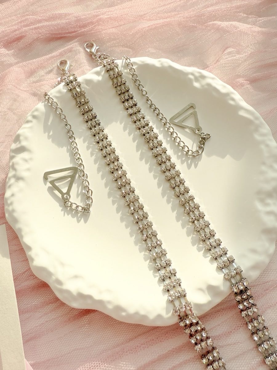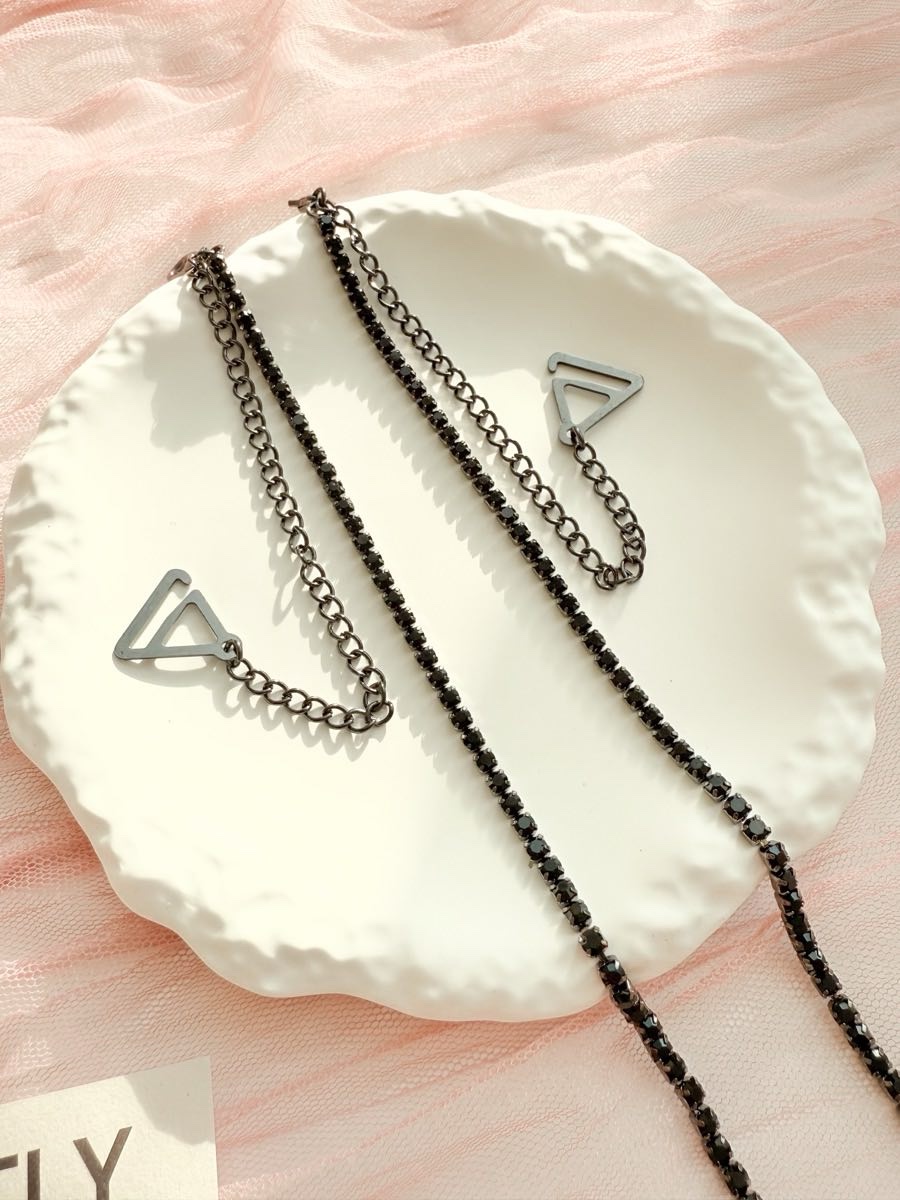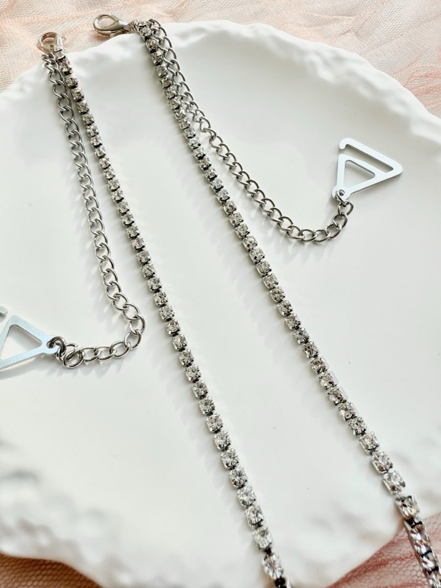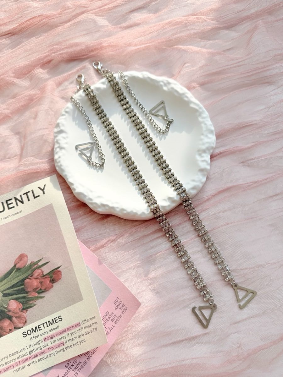 Змінні бретелі для бюстгальтера зі стразами — яскравий аксесуар, що додає образу сяйва і водночас забезпечує надійну посадку. Металеві ланки зі стразами красиво виблискують у світлі, а регульована довжина дозволяє підлаштувати бретелі під будь-яку фігуру та фасон.