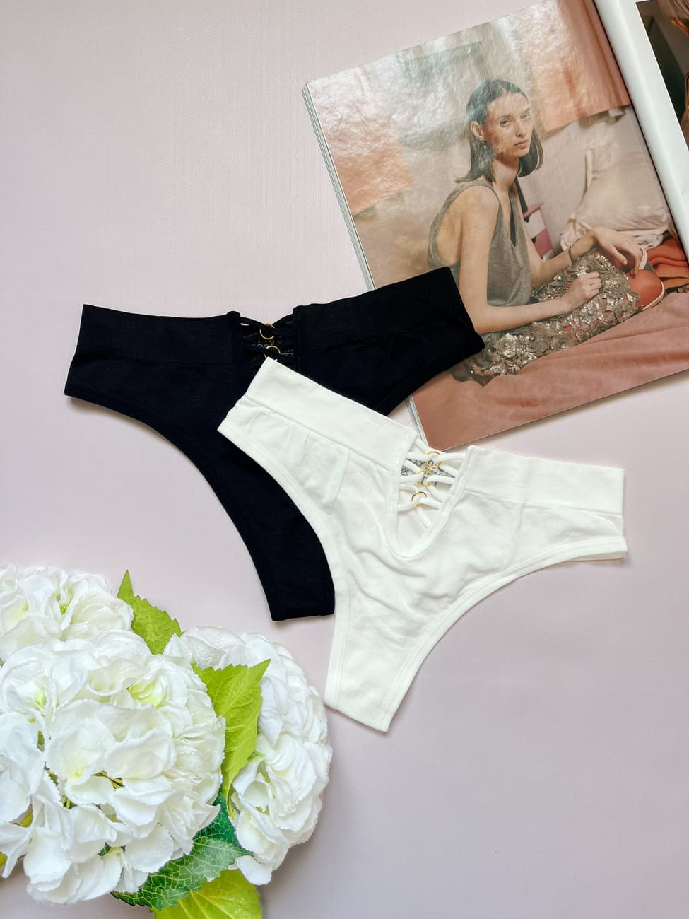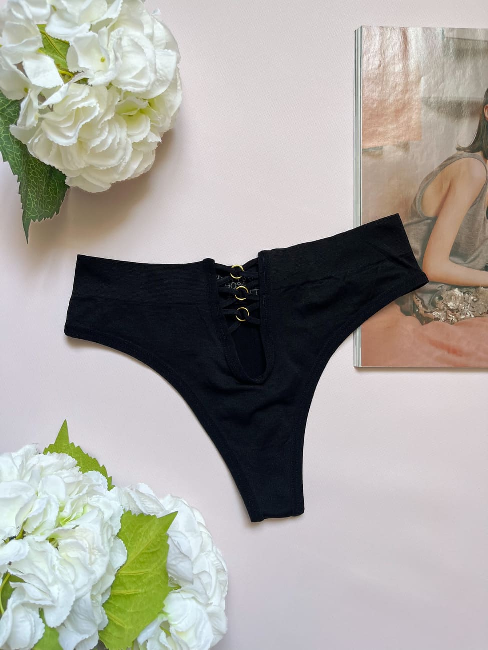Стрінги з кільцями — це ідеальний вибір для тих, хто цінує поєднання стильного дизайну та комфорту. Висока посадка забезпечує зручність та підкреслює лінії тіла, а декоративні металеві кільця додають особливого шарму та елегантності.