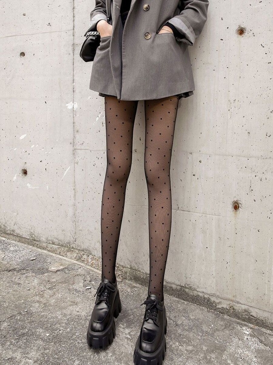 Елегантний вигляд: ефект голих ніжок та візерунок горошку додають природності та стилю вашому образу.