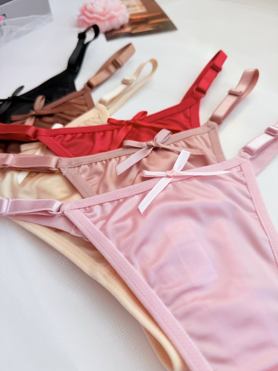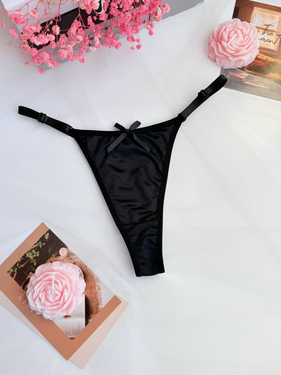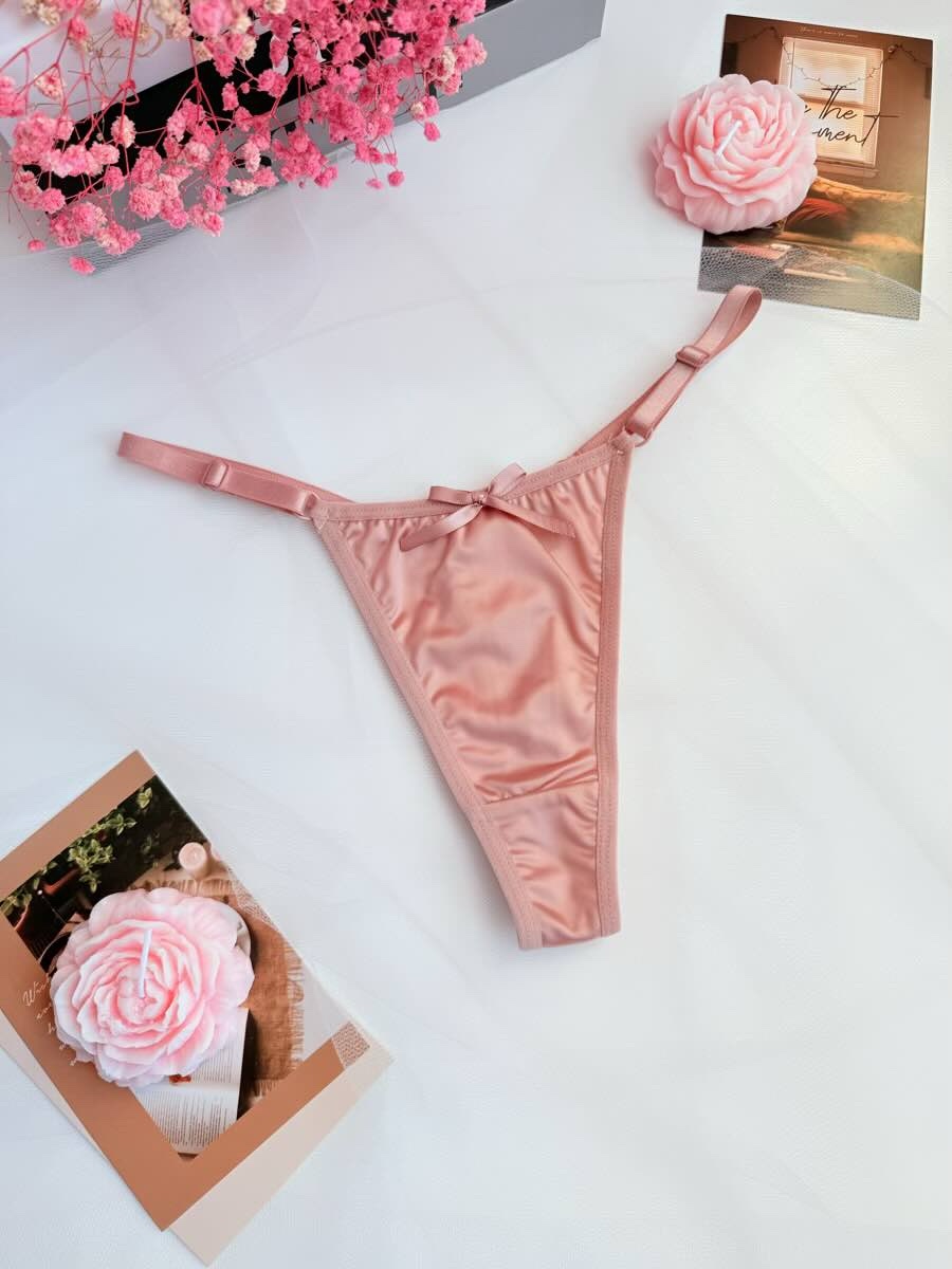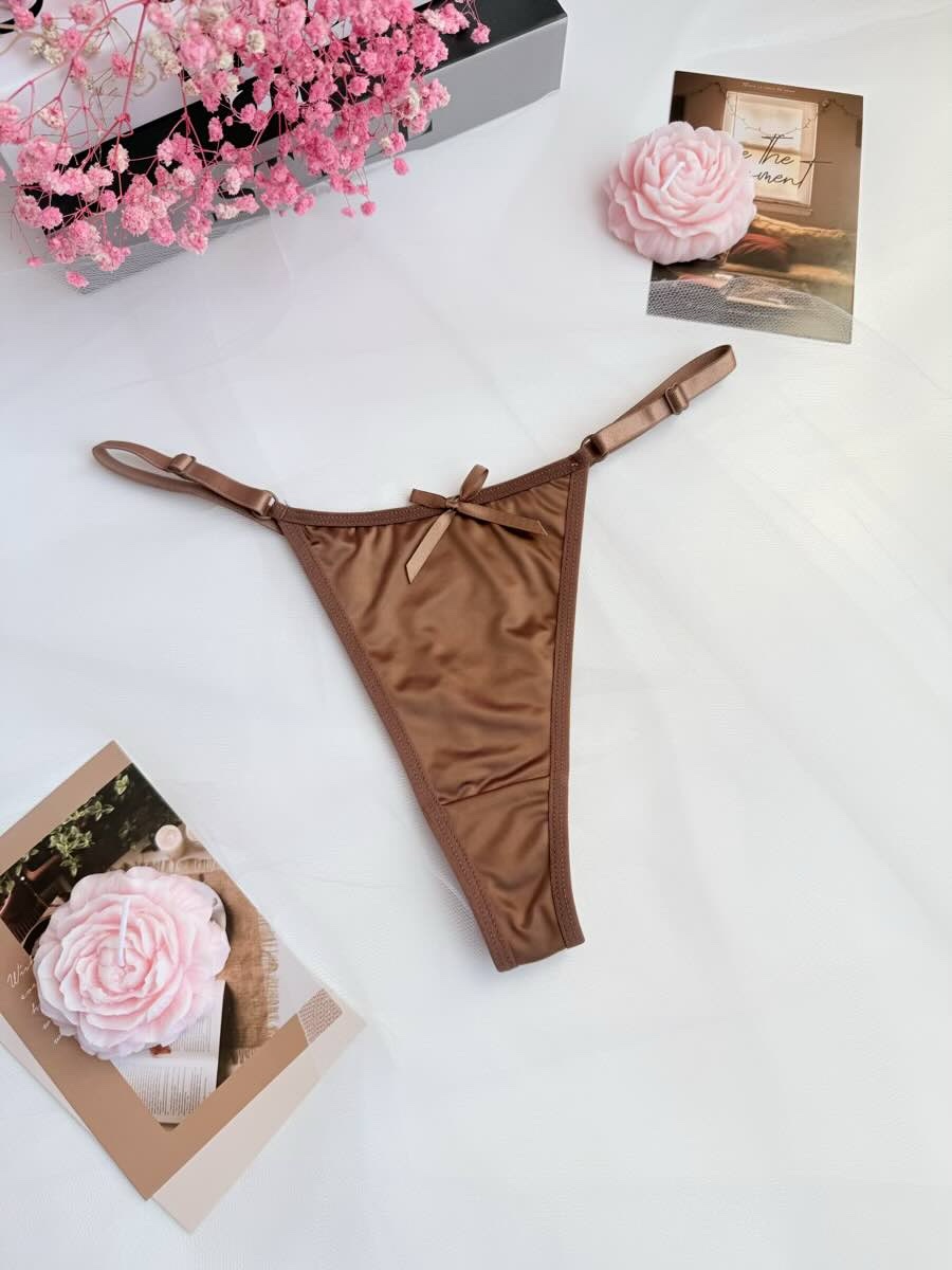 ✨ Жіночі атласні трусики-стрінги з бантиком — це модель, створена для тих, хто хоче почуватися привабливою кожного дня. М’який сатиновий блиск, делікатна посадка, кокетливий бантик ззаду — усе в цих трусиках говорить про витонченість і чуттєвість.