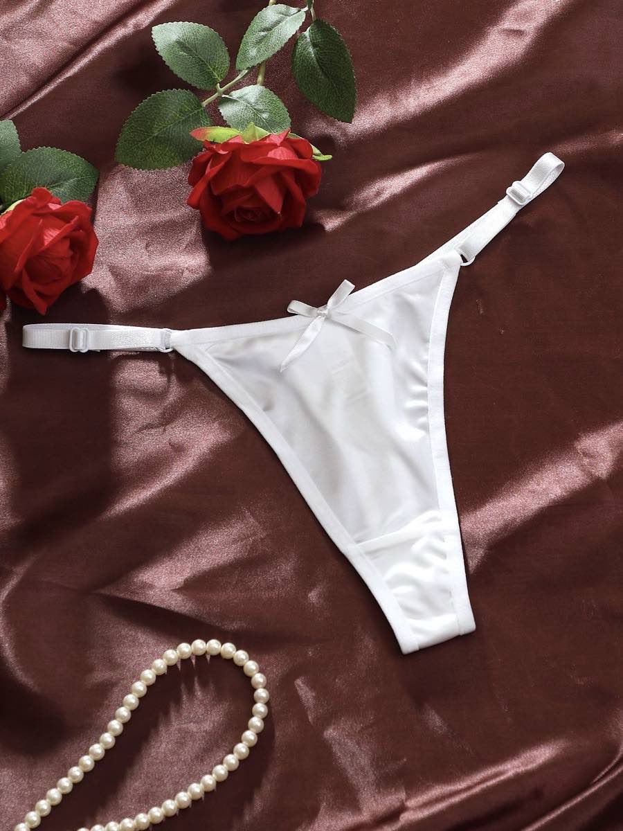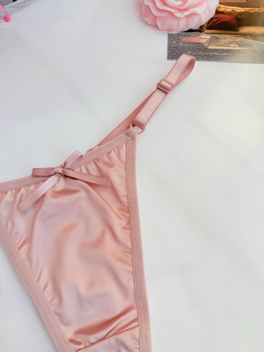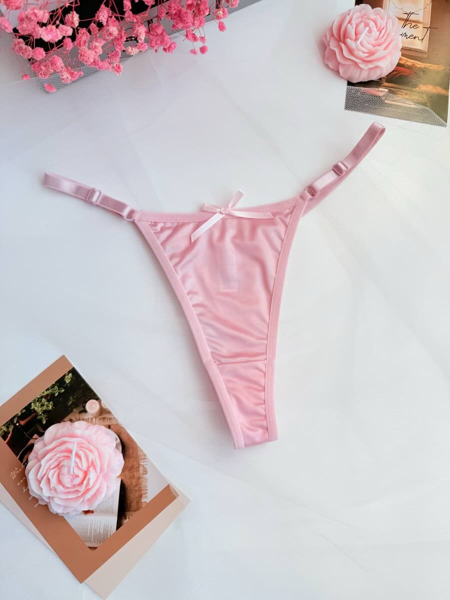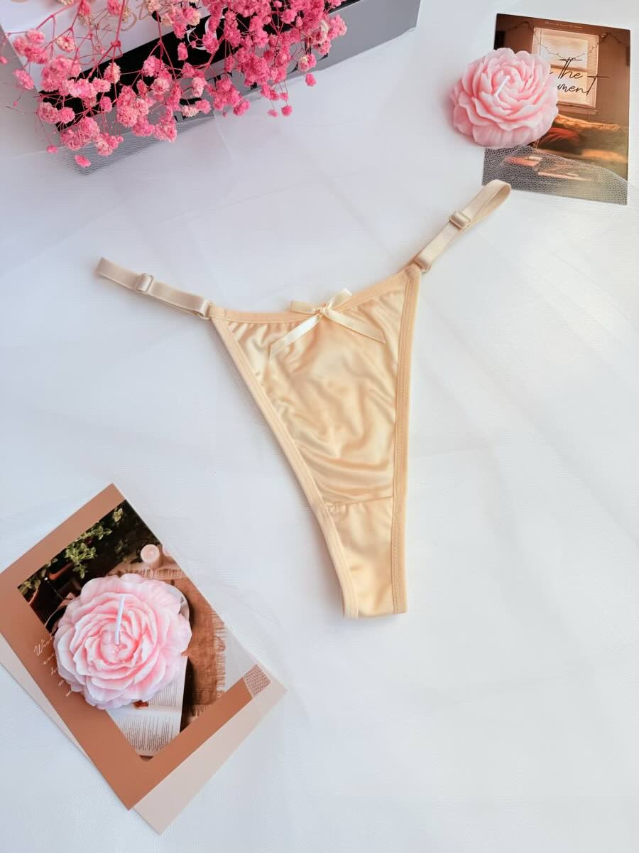 ✨ Жіночі атласні трусики-стрінги з бантиком — це модель, створена для тих, хто хоче почуватися привабливою кожного дня. М’який сатиновий блиск, делікатна посадка, кокетливий бантик ззаду — усе в цих трусиках говорить про витонченість і чуттєвість.